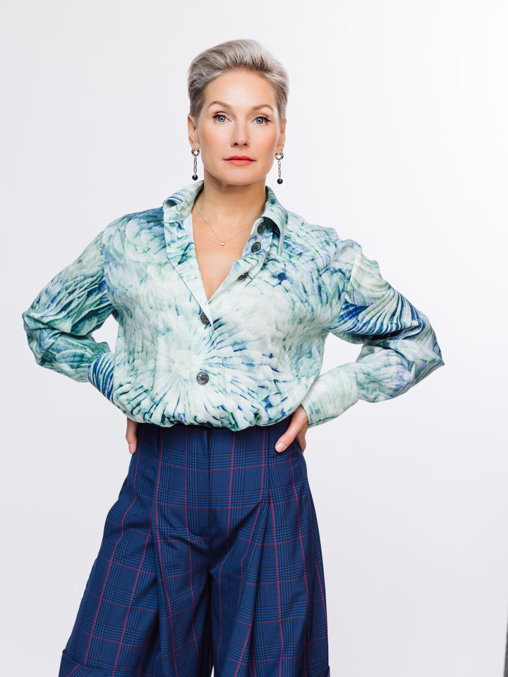 Extremely soft fabric and comfortable blouse, decorated blue pattern