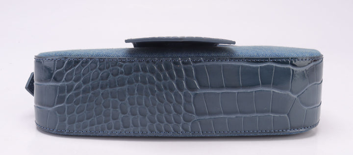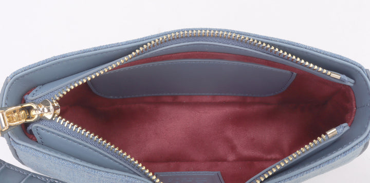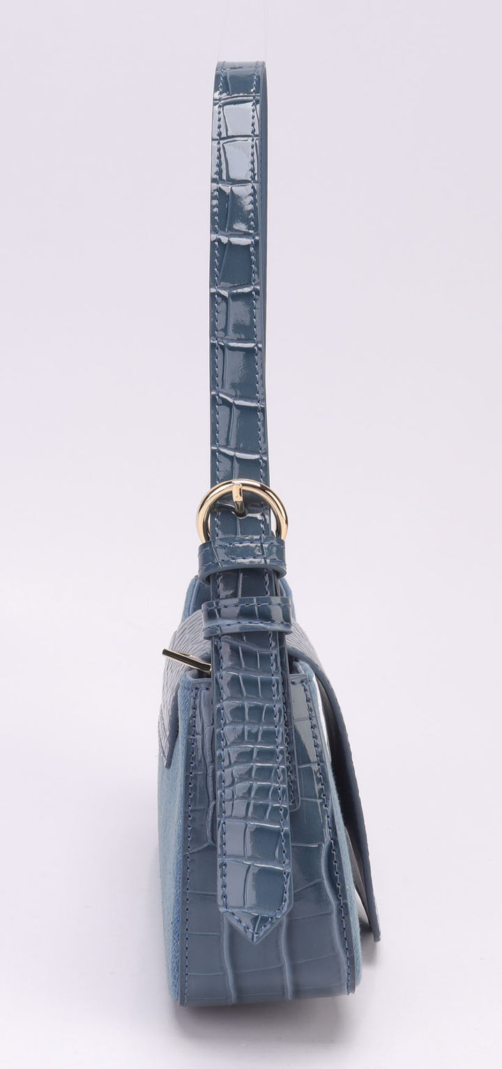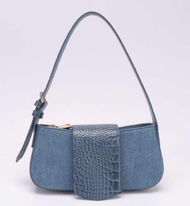 Compact and Stylish Shoulder Bag. Washed denim & luxurious croco cow leather
