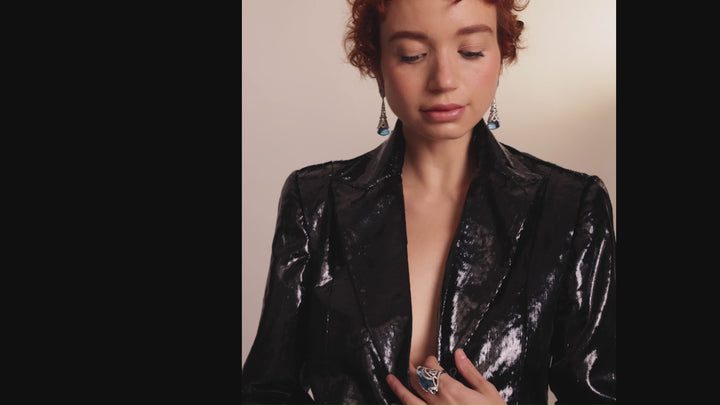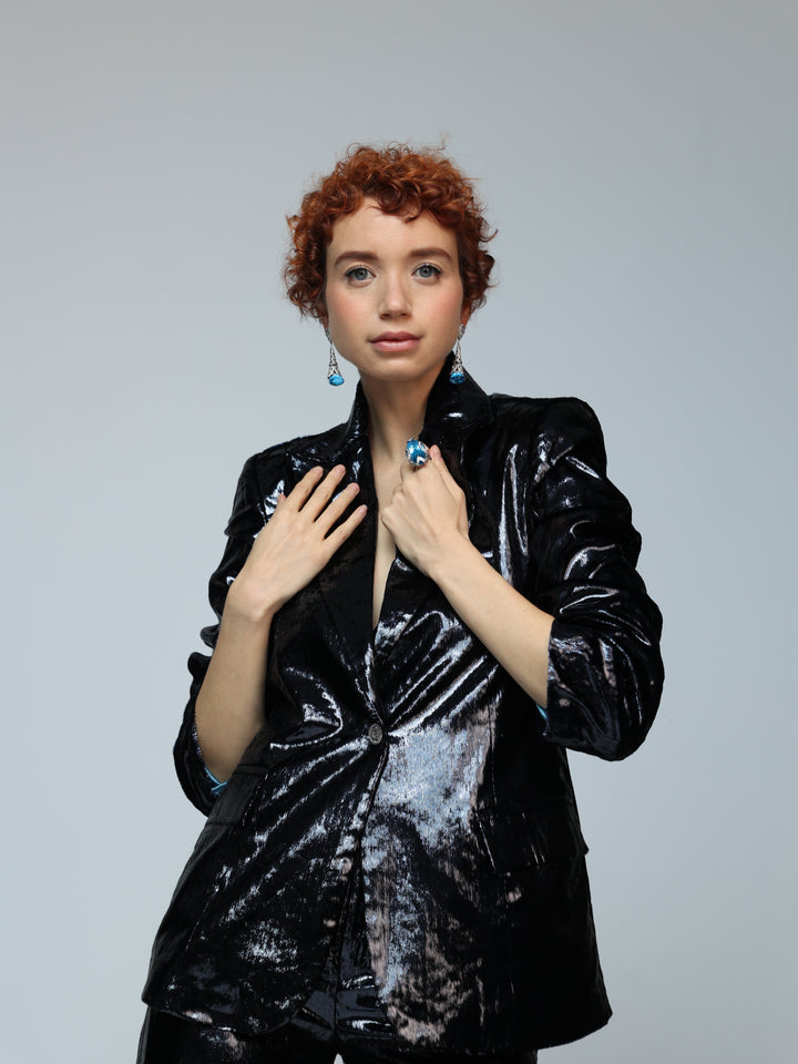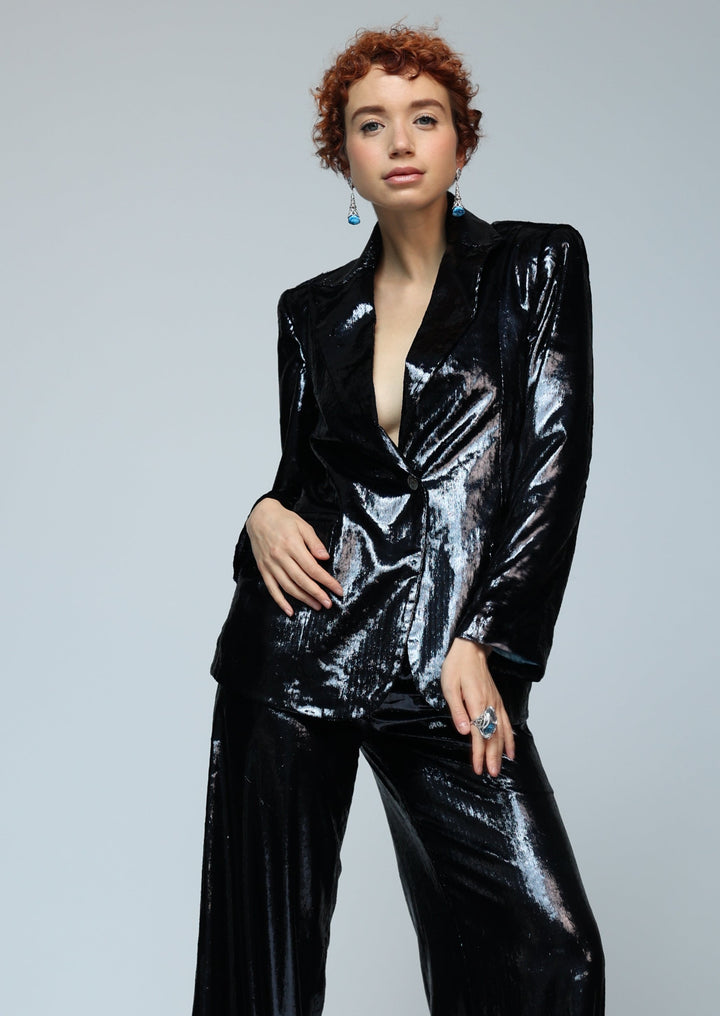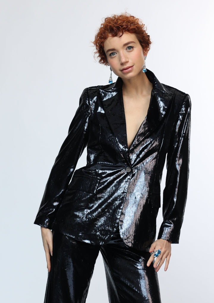 Tailored jacket. Unique fabric of metal velvet. It does not contain lurex. The fabric shimmers in the light and under the light of night lamps.
