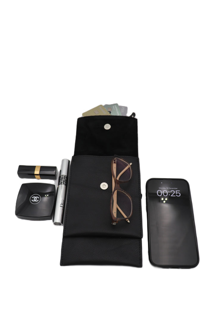 Wear it over or under clothing for comfort and safety — or use it as a clutch or cosmetic pouch.
