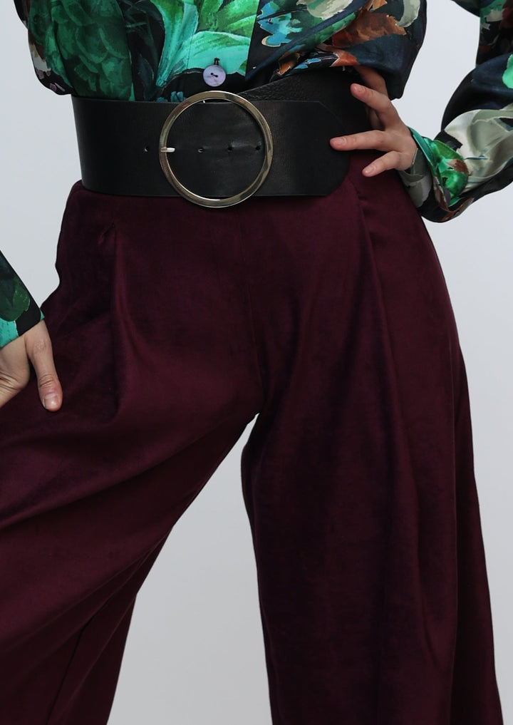 Stretch artificial suede trousers. Elastic waist without zipper, it is very convenient and quick to put on and take off. Color: Dark crimson